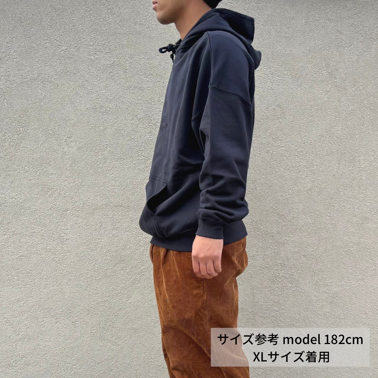 前面に大きくデザインした刺繍が目をひくインパクト抜群のフーディー。