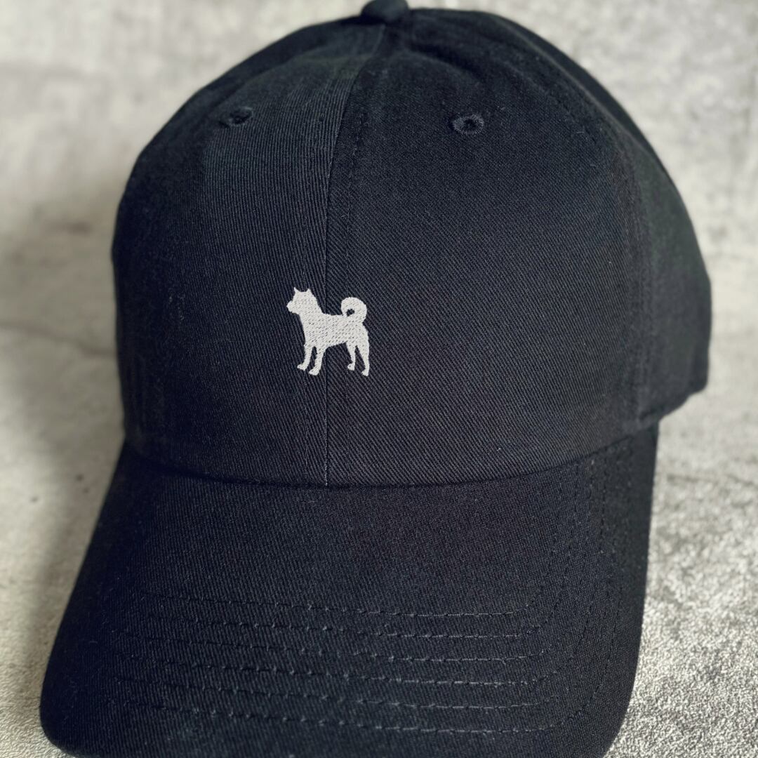 柴犬シルエットをワンポイントであしらったコットンツイルキャップ。
