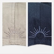 バックにはウィーケンズの太陽ロゴをシンプルに刺繍。キャップの色と馴染んでくれそうな糸カラーを選んでいます。