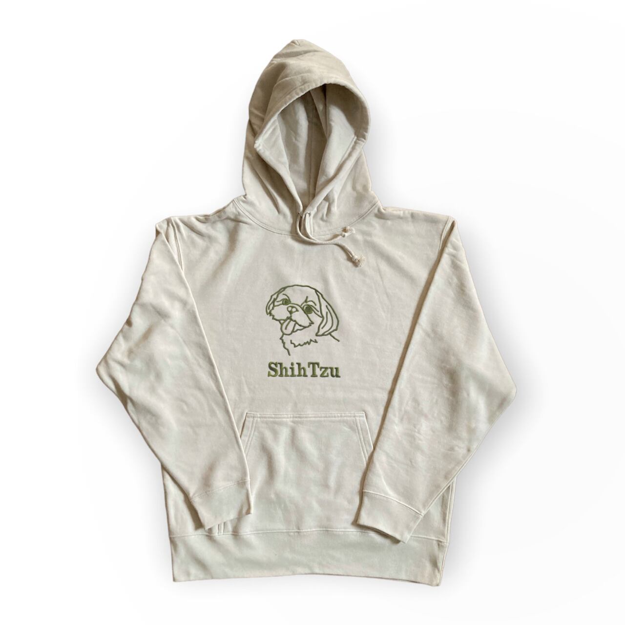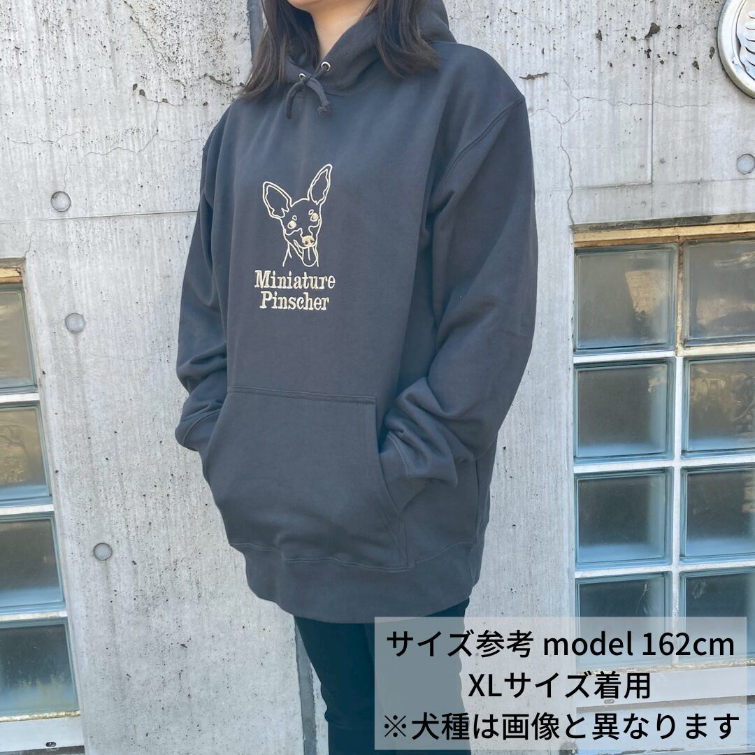 前面に大きくデザインした刺繍が目をひくインパクト抜群のパーカー。