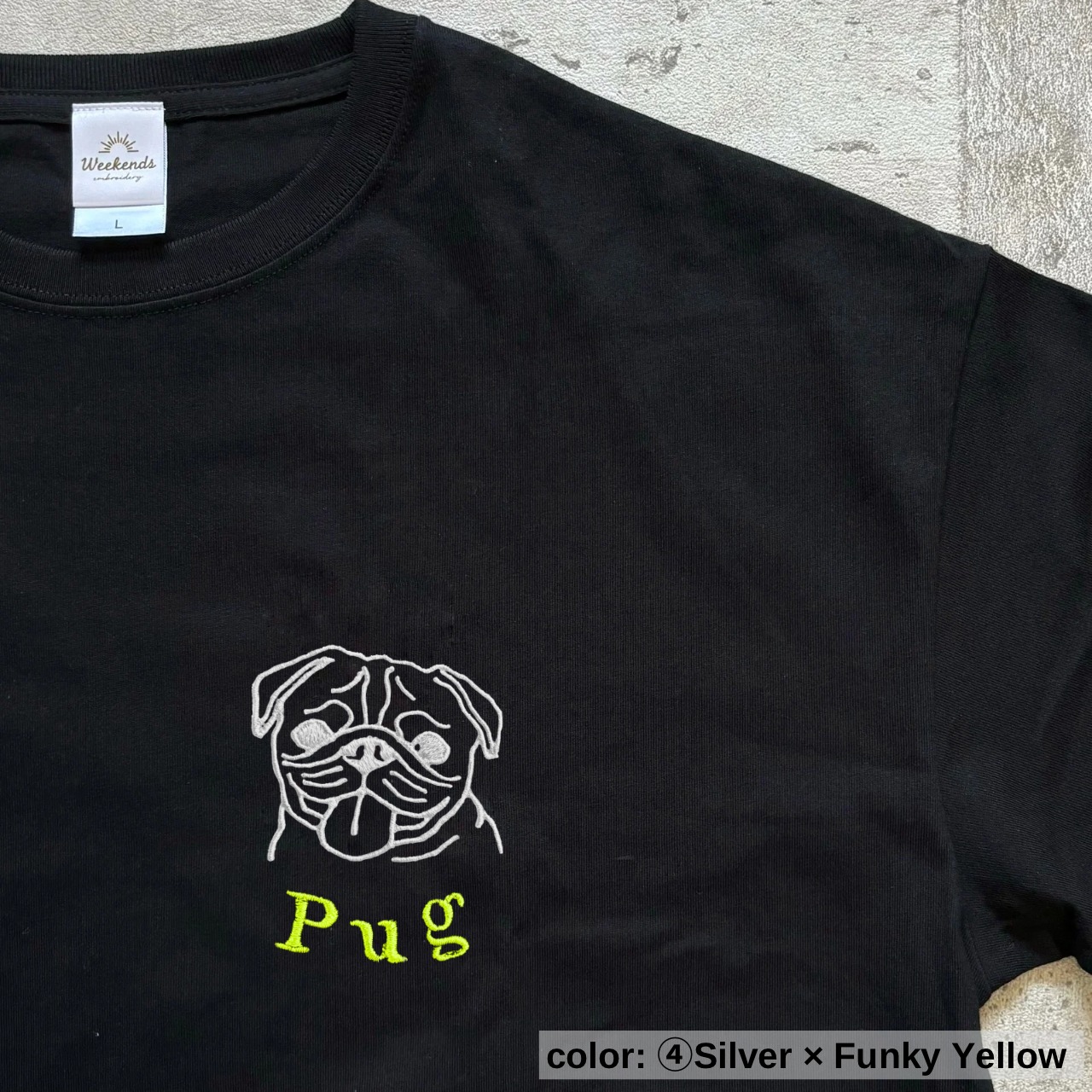 普段のコーディネートにさらっと取り入れやすいよう、シンプルかつポップなタッチで描いたイラスト刺繍です。